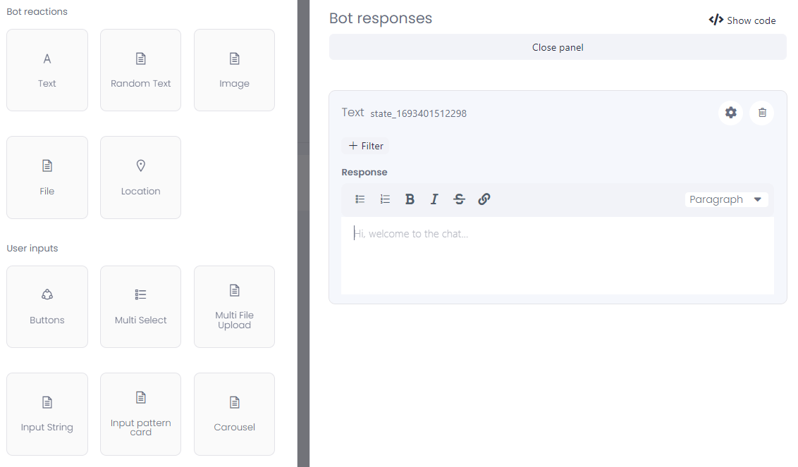 Then, it is time to choose how the bot will respond. Then press "Add bot response":