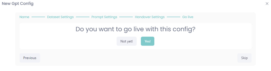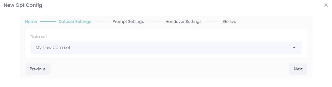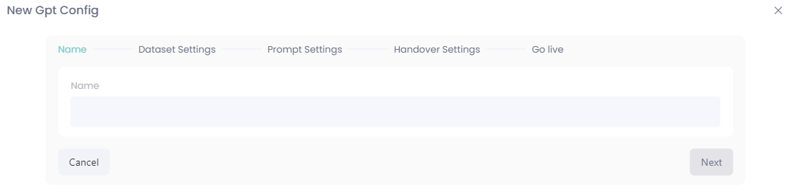 This guide walks you through creating a new config. The process involves naming your config, choosing a dataset, writing a persona, and configuring the agent handover settings.