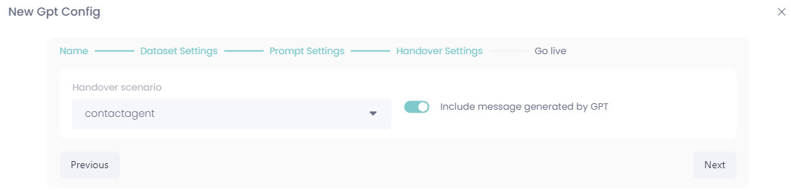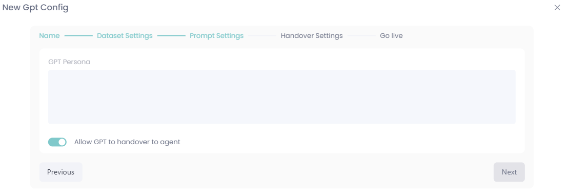 Create your persona and choose if the GPT model should allow handovers to agents or not: