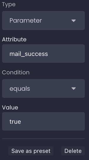 In this example we say that if the variable mail_success is set to true, then play this card.