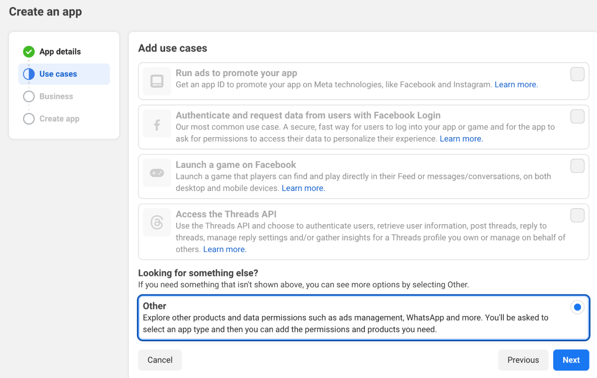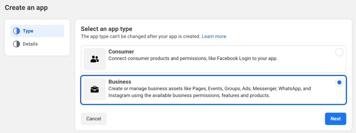 Step 3: Under "Select an app type", choose "Business" and click "Next".