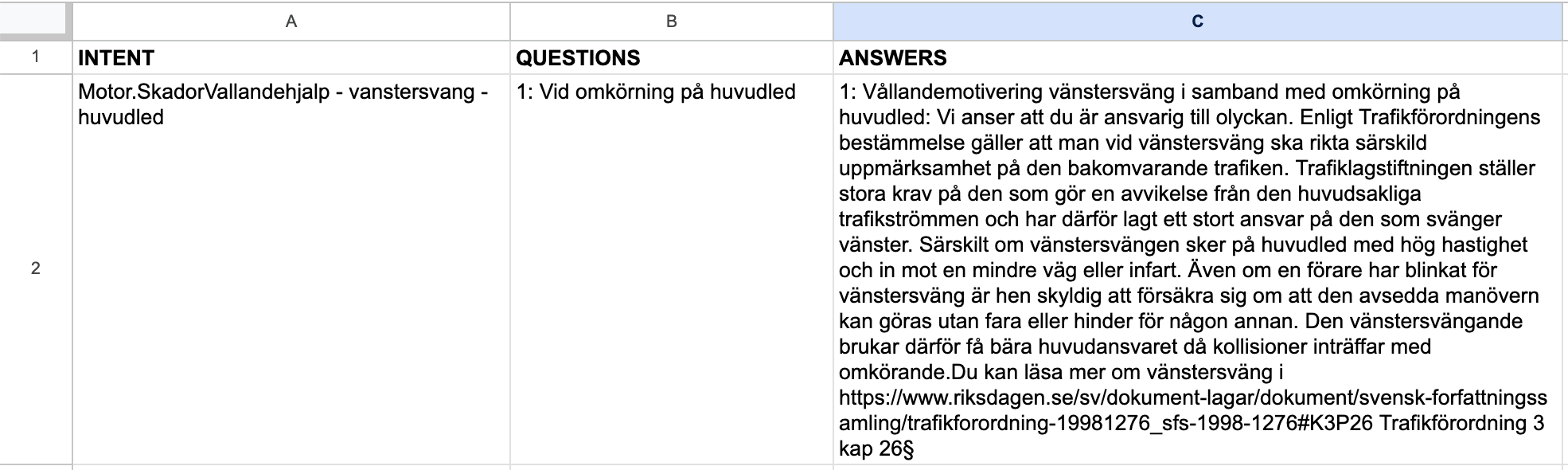Since the column called INTENT is unique for each row it can be used as id. (If it wasn't we would have to create a new column called id and add a unique number to each row).