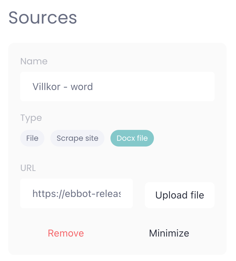 Adding a word document is the easiest source type to add. All you need to do is click on docx file and upload your word document.