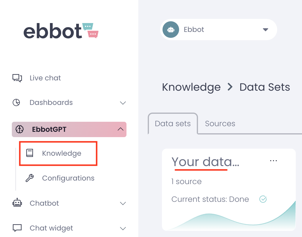 If the import was successful you can instantly try your bot and see how it answers based on your new data source by clicking on the icon with 2 chat bubbles in the top right corner.
